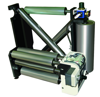 4. Регулируется натяжение как лицевого материала, так и подложки. Также регулируется усилие прижима ламинирующего валика. В устройстве используются пневматические компоненты производства Festo (Германия).