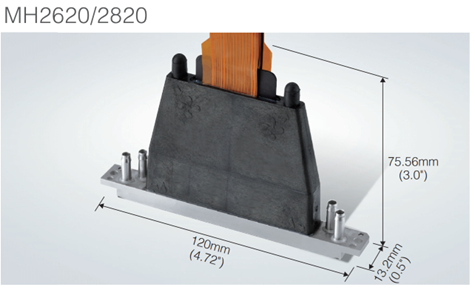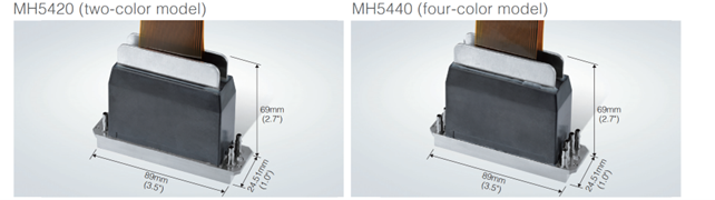 MH2620 : 15pl - 30kHz, 30pl - 20kHz, 45pl - 14kHz *depending on the ink. MH2820 : 27pl - 30kHz, 54pl - 20kHz *depending on the ink